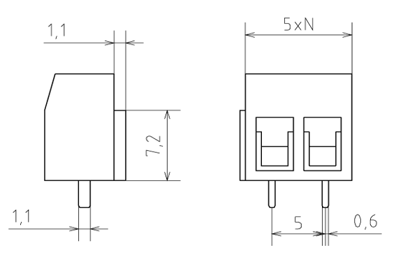 TB-02A кopoткий Клеммник с винтом 2 позиции, шаг 5,00мм