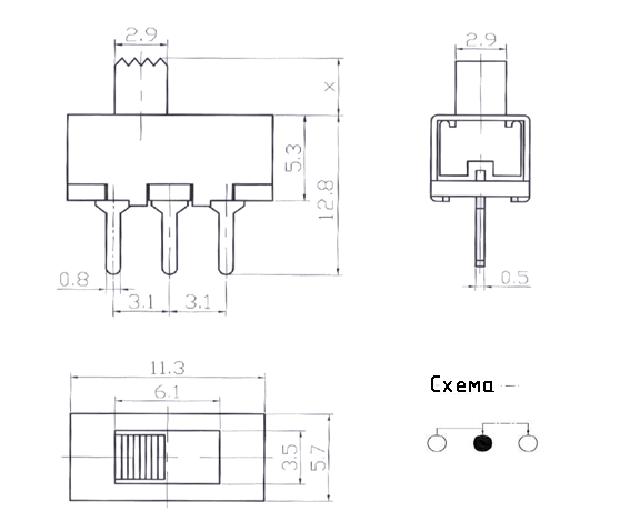 | Тип переключателя | переключатель сдвиговый | |