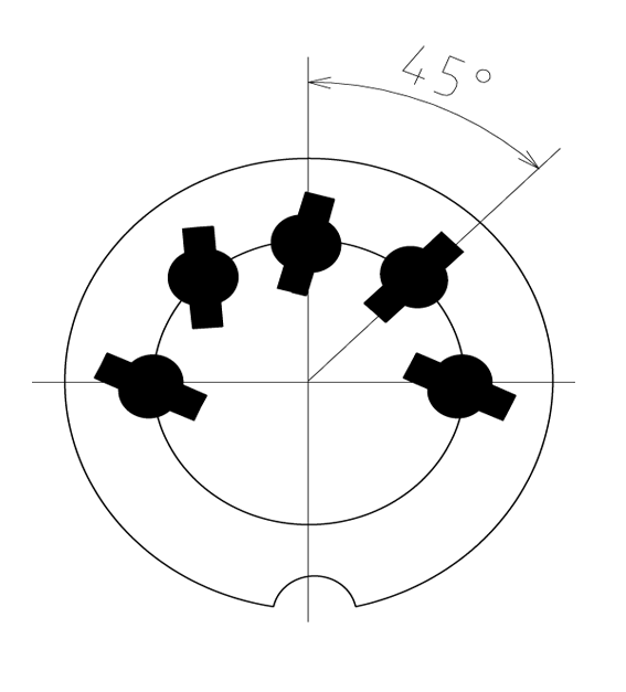 Гнездо DIN 5 контктов на блок, 45 градусов