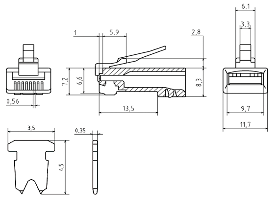 | Компоненты СКС | разъемы RJ | |