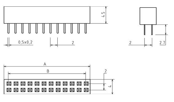 Разъем 2х25 гнездо на плату, шаг 2мм