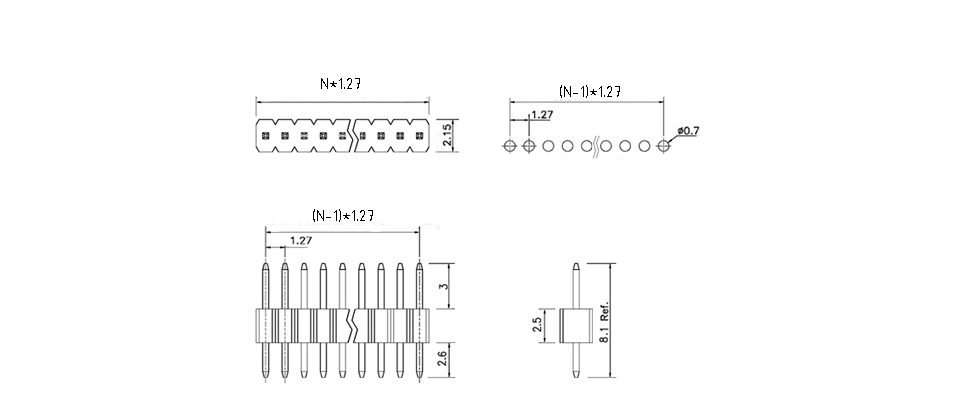PLL1.27-30 Штыревой соединитель 1х30 шаг 1,27мм