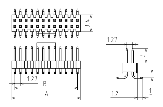 PLLD-1.27-80S Штыревой соединитель 2х40 шаг 1,27мм, поверхностный монтаж
