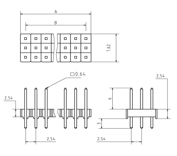 Штыревой соединитель 3х27 шаг 2.54мм