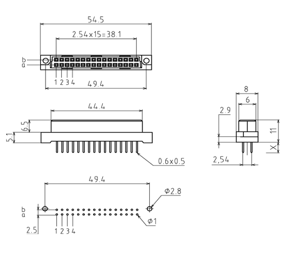 | 2.54мм | 32 | a b |
